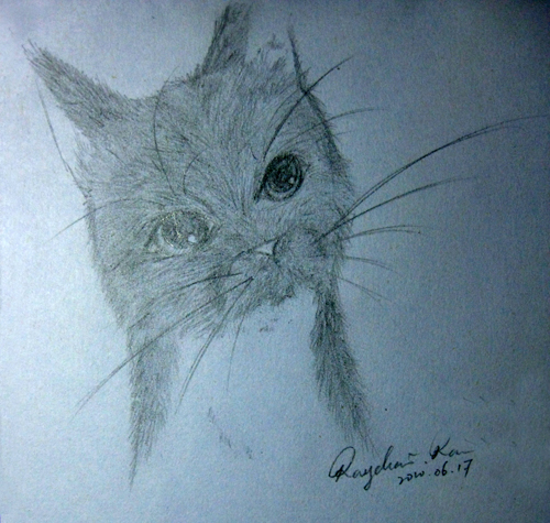 貓兒大概是白天折騰得太累——儘管男人知道這傢伙只要隨便有個平面就可以睡著——蜷縮著身子將就著已經睡熟了,可是男人卻被冷得越發清醒起來。